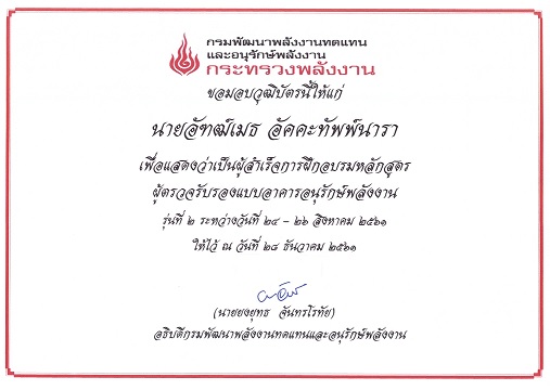 ผู้ตรวจสอบระบบผลิตพลังงานควบคุม เลขทะเบียน(ตพค. ๐๐๐๒๑๙)